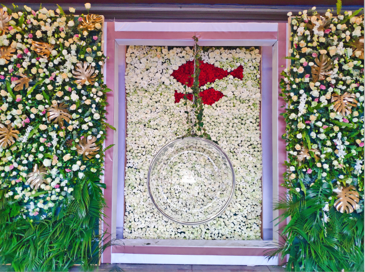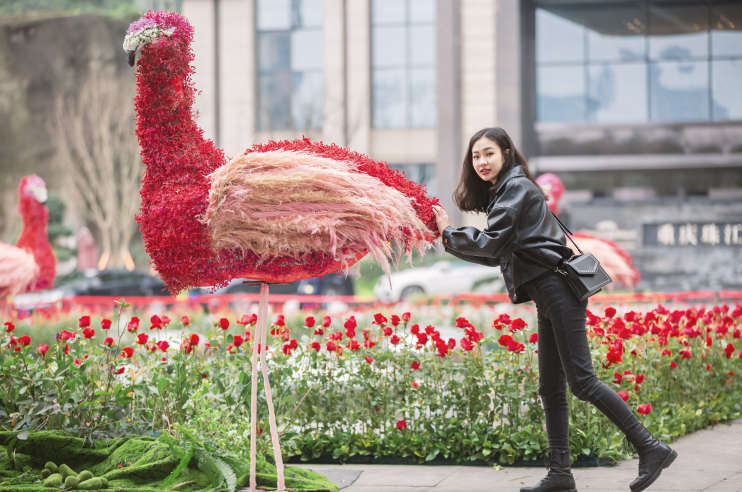 A total of 6000 + roses, filled with pools, a flamingo symbolizing freedom stands among them, walking among them, minutes to become the heroine of Korean opera.