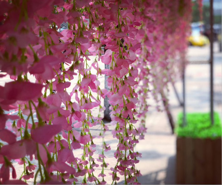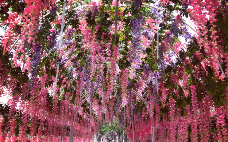 As soon as you enter the Likely Wharf, the sea of pink and purple flowers on both sides firmly catch everyone's eyes. Wisteria flowers lay on top of each other, spikes float in the wind, flowing out the unique romantic feelings of spring ~the romantic atmosphere makes people take minutes to incarnate themselves as the heroine of Korean dramas.